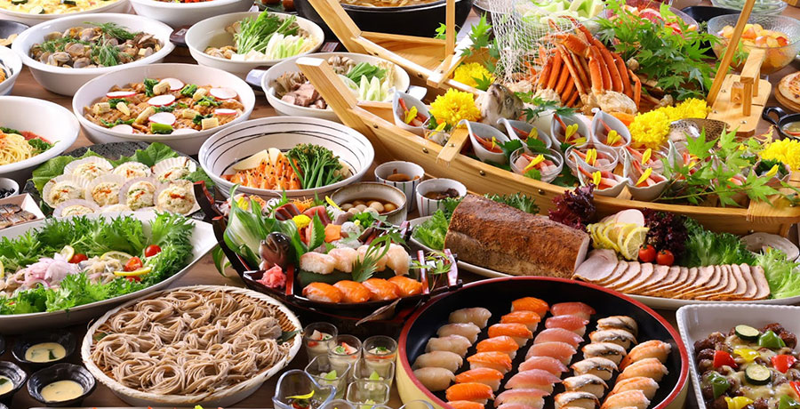 白馬の旬な食材を中心としたご当地バイキングをお楽しみいただけます。