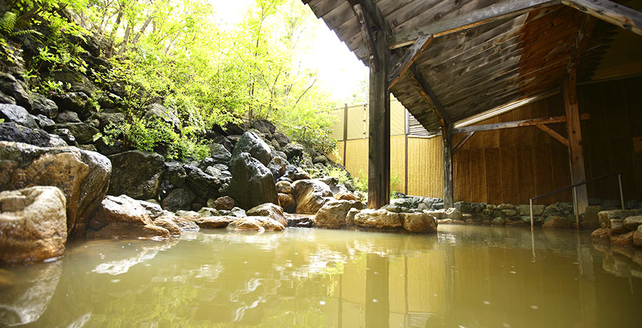 県内有数の天然温泉。ナトリウム硫酸塩質の黄褐色の湯は、とろりと柔らかな肌触りで「美肌の湯」としても好評です。