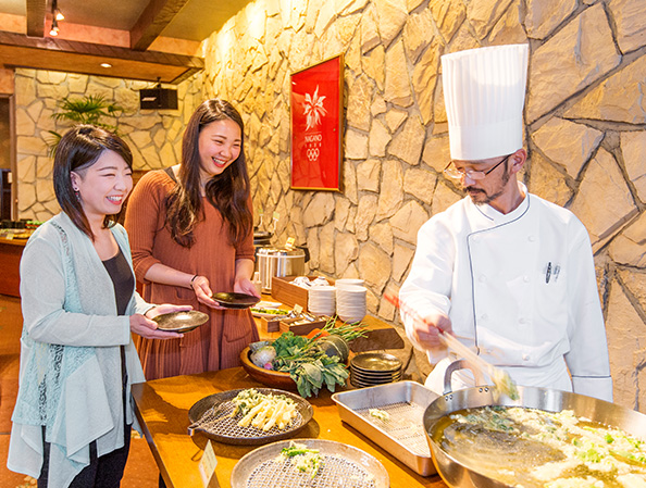 信州ならではの食材を絶妙に配し、エグゼクティブシェフの技と融合したメニューの数々。選りすぐりの食材が奏でるハーモニーを、心落ち着くレストランで、ごゆっくりとお楽しみ下さい。