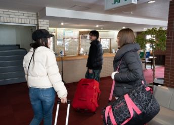 宿に着いたらスムーズにチェックイン。スキーやスノーボード、ウエアをレンタルするなど滑りに行く準備を済ませよう。