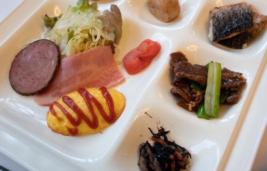 肉や魚、野菜、フライや焼き物、麺類など、日替わりで内容が変わるので連泊しても毎回違った料理を楽しめる。「野菜をたっぷり」、「炭水化物を山盛りに」と、好きなものを好きなだけ楽しめるのがバイキングのよいところ。