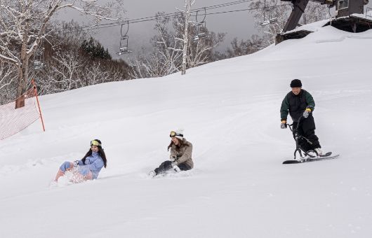 スノーランド入場者はスノースクート、スノードライブを楽しめる。入場料と別料金のレンタルをすればスノーランド外のゲレンデでも利用可能だ。