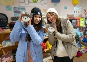 オコジョがモデルの「おこみん」は志賀高原のPRキャラクター。売店には連れて帰りたくなるかわいいグッズが揃っている。