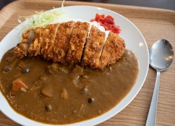 米豚のカツカレーは、サクッと揚げたカツが美味。