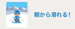 夜出発するスキー旅行・スノボ旅行なので、朝にスキー場到着!朝一番からおもいっきり滑れます!