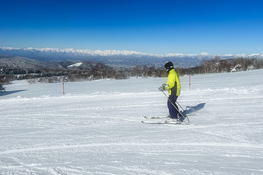緩やかなコースが充実し、レンタルやスクールなどのサポート体制が整っているスキー場を選びました。
