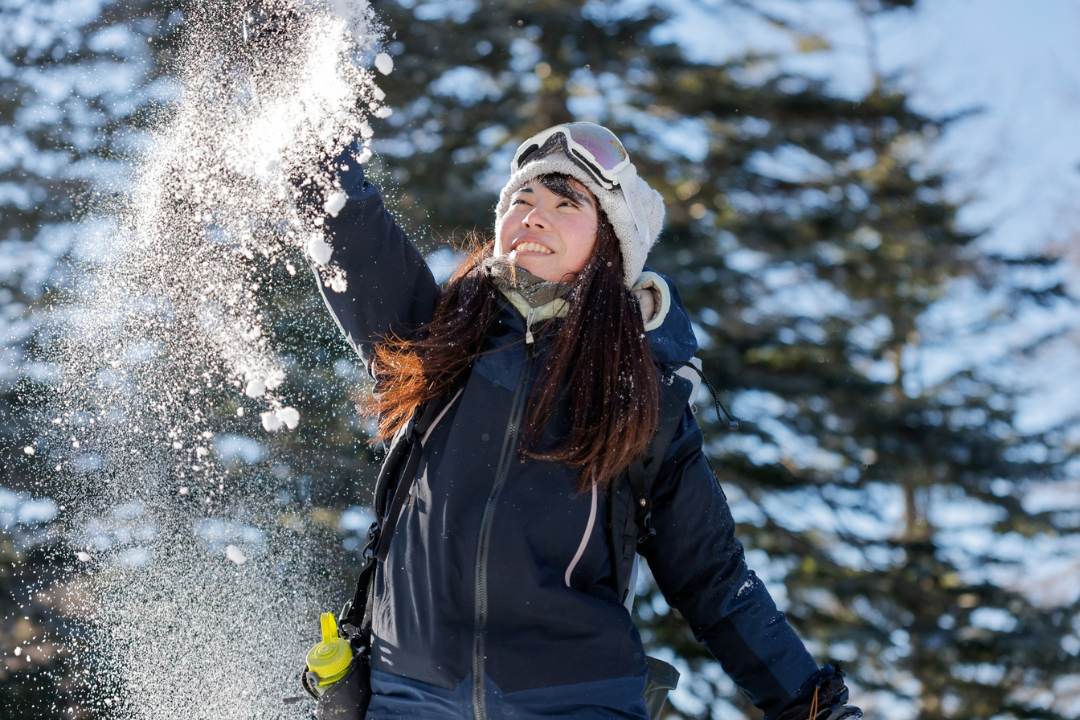 水分が少ないので手で固めても雪玉をつくることができず、簡単に崩れてしまうような雪質です。この特徴により、スキーやスノーボードで滑ると体が宙に浮くような浮遊感を味わうことができ、大きな魅力となっています。