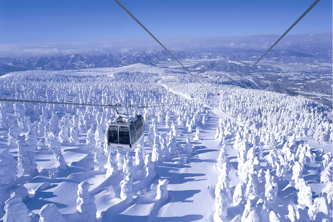 このスキー場は、シーズン終盤も最長で5月上旬ごろまで滑れるのも嬉しいポイントです。蔵王名物の樹氷を眺めながら滑れるサンゲ坂・樹氷原コースは、最初はゆるやかな坂ですが、途中から狭くて急なコースになるので中級者向け。注意しましょう。