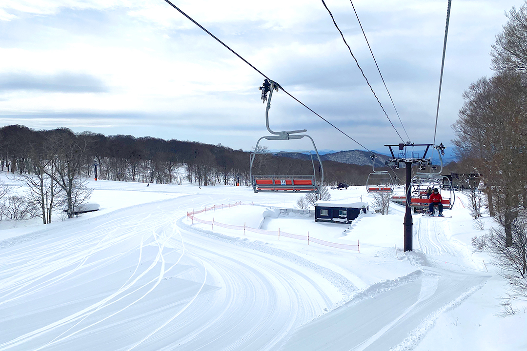 メインエリアの周囲には、さらに初級コースへ続く2人乗り第3リフト、中級コースへつながる2人乗りの第5リフト、ゲレンデの頂上につながる4人乗りの第2高速リフトがあります。頂上からは自分のレベルに合わせて初級・中級・上級の行きたいコースへ進めます。