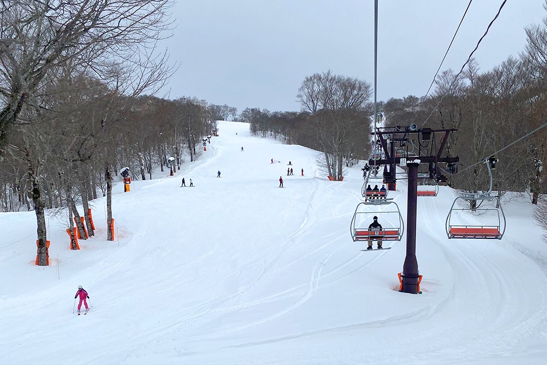 ゲレンデの約8割は初級・中級者向けのコースで緩やかな斜面が多く、スキー・スノボが初めての仲間がいても安心です。