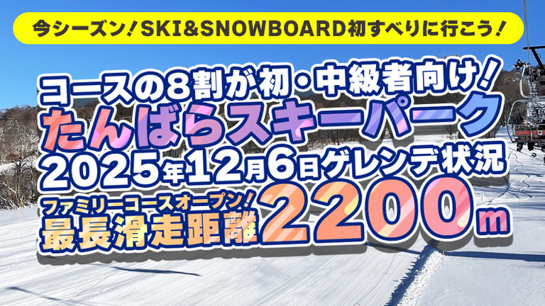 - 【最長滑走距離2200m】初すべり朝発日帰りスノボ&スキーツアー!たんばらスキーパーク